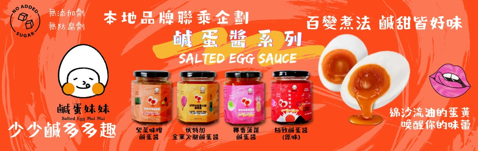 擅長研製無味精醬料的特色醬料品牌ONEMOREDISH,最近與鹹蛋妹妹聯乘合作,炮製出4款手工鹹蛋醬。「極緻鹹蛋醬」使用純鮮法國淡牛油炒頂級流沙漏油的鹹蛋而成,誘發出鹹蛋甘香。伏特加金華火腿鹹蛋醬,將鹹蛋黃粒、伏特加烈酒和金華火腿以牛油慢火煮成,比較濃味。紫菜味噌鹹蛋醬,先嘗到味噌和鹹蛋的濃香,餘味帶紫菜鮮味。最特別的是椰香鳳梨鹹蛋醬,既有鹹蛋鮮味,亦散發椰香和菠蘿酸甜,可直接塗抹麵包享用。除此之外,鹹蛋妹妹製作的即食鹹蛋 (8粒裝),無激素,無添加劑及無抗生素,即食便可,非常方便!